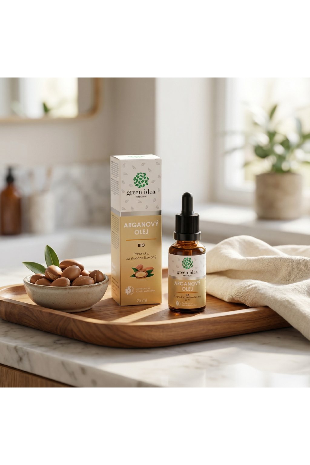 Arganový olej patří mezi nejluxusnější a zároveň nejdražší kosmetické oleje světa. Pro své výjimečné vlastnosti je často nazýván marockým zlatem. Arganový olej je bohatým zdrojem nenasycených mastných kyselin, antioxidantů, vitamínů a fytosterolů. Olej je vhodné použít na citlivou, suchou a ekzematickou pokožku. Redukuje výskyt vrásek, hydratuje a pomáhá udržet pokožce mladistvý vzhled. Doporučujeme rovněž vetřít několik kapek ke zlepšení kvality vlasů (na suché, poškozené a roztřepené vlasy).