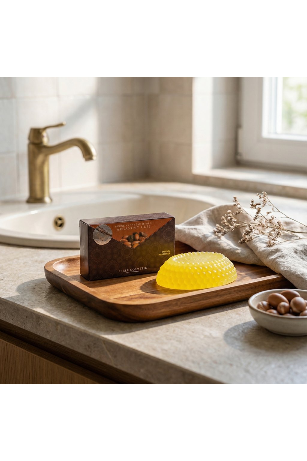 Přírodní ručně vyráběné mýdlo s arganovým olejem. Arganový olej nazývaný rovněž marocké zlato, patří mezi nejluxusnější kosmetické oleje světa. Vaši pokožku hydratuje, vyživuje a tlumí projevy stárnutí. Po jeho použití bude pokožka jemná, vláčná a mladistvá. Mýdlo má příjemnou, nevtíravou vůni.