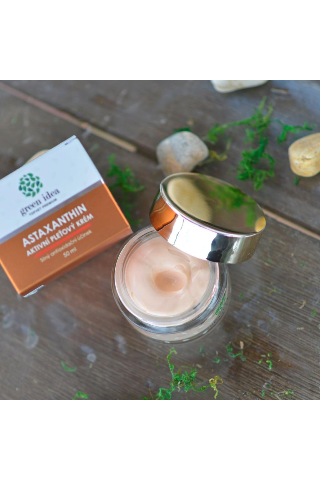 Aktivní pleťový krém s astaxanthinem ze sladkovodních řas. Astaxanthin je jedním z nejsilnějších přírodních antioxidantů. Díky tomu krém plní nejen funkci bariérové ochrany pokožky, ale také aktivně působí proti vnějším vlivům prostředí. Krém rovněž pleť hydratuje, regeneruje a tlumí projevy jejího stárnutí. Pokožka zůstává mladistvá a zdravá.