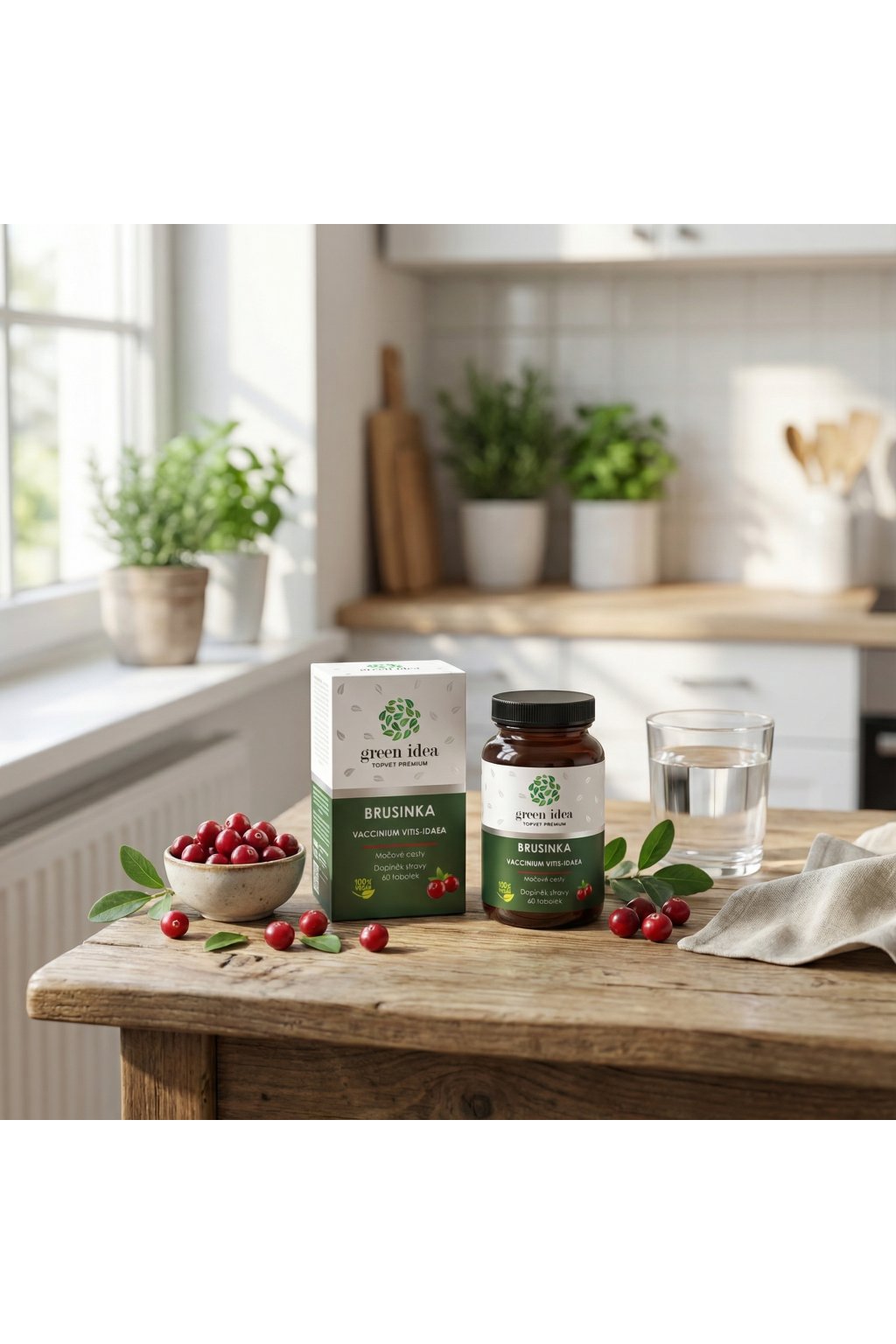 Brusinka pomáhá tělo chránit před oxidačním stresem. Přípravek podporuje správnou funkci močových cest. Přináší úlevu při premenstruačním syndromu a menopauze. Podporuje přirozenou obranyschopnost.