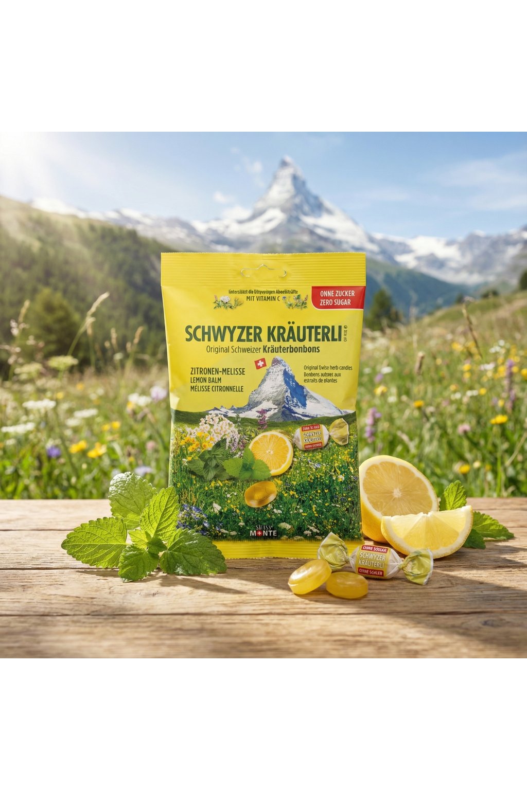 Bonbony důmyslně kombinují originální směs 20 bylin s osvěžujícím aroma z citronu a meduňky, a nabízí tak tu pravou tradiční švýcarskou bylinkovou chuť úplně bez cukru.