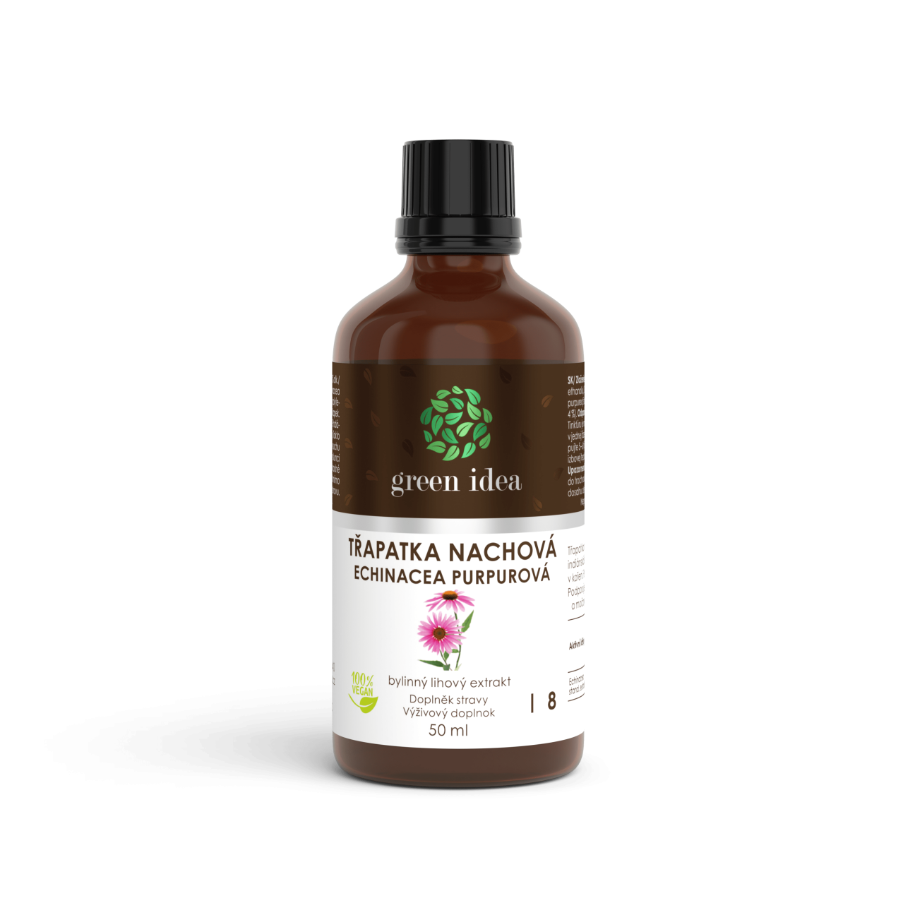 Složení: voda, jemný líh (minimálně 35 obj. % alk./ethanolu), Glycerin, Třapatka nachová (Echinacea purpurea) standardizovaný extrakt z celé rostliny (polyfenoly 4 %).