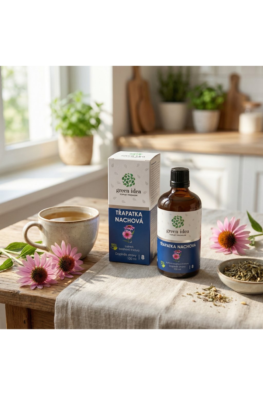 Složení: Glycerin, voda, Třapatka nachová (Echinacea purpurea) standardizovaný extrakt z celé rostliny (polyfenoly 4 %).