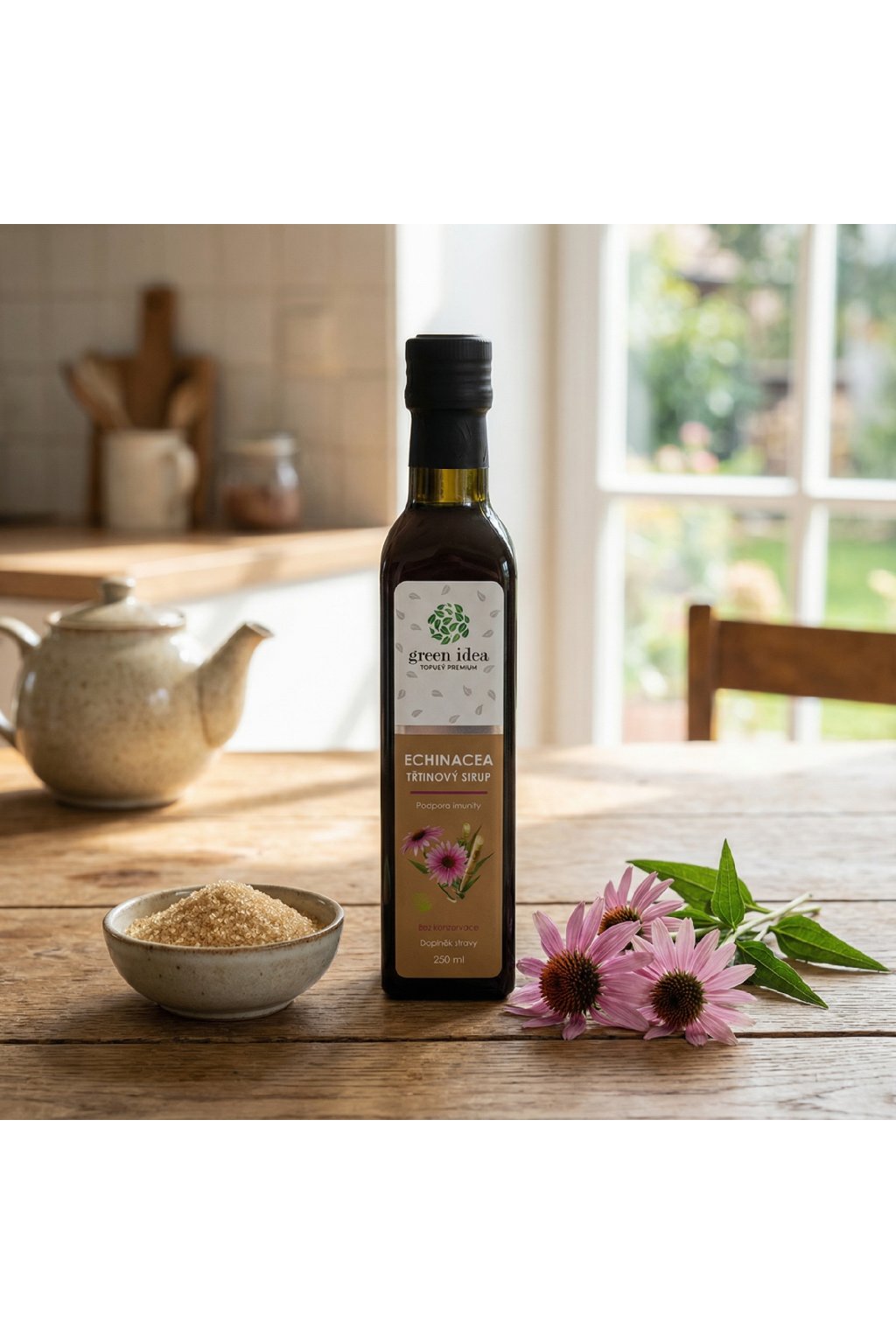 Složení: třtinový cukr (65 °Bx), voda, glycerol, přírodní citronová šťáva, Třapatka nachová (Echinacea Purpurea) standardizovaný extrakt z celé rostliny (polyfenoly 4 %), Ibišek súdánský (Hibiscus sabdariffa) extrakt z květu (10:1), citrusová vláknina, přírodní aroma