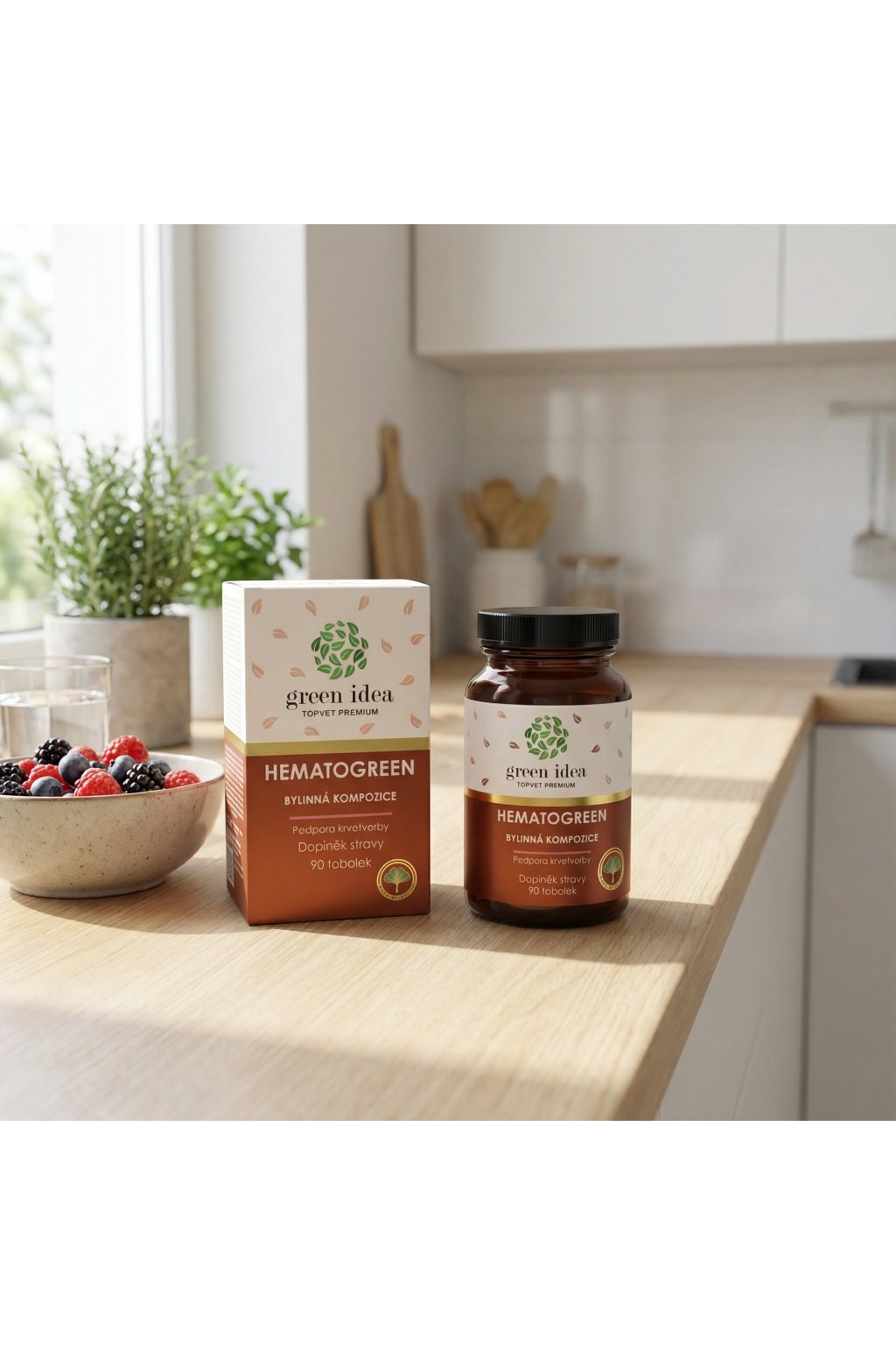 Hematogreen je směs bylin a vitamínů, které podporují krvetvorbu (hematopoézu). Železo přispívá k normální tvorbě červených krvinek a hemoglobinu a k normálnímu přenosu kyslíku v těle. Železo je proto důležité pro normální zásobení těla kyslíkem, podporuje správnou funkci imunitního systému a snižuje míru únavy a vyčerpání. Vitamín C zlepšuje vstřebatelnost železa do těla. Kyselina listová má obdobnou funkci jako železo, je proto důležitá k podpoře krvetvorby. Vitamín B12 podporuje tvorbu červených krvinek a zlepšuje vstřebatelnost železa. Bylinný komplex obsahuje přesličku, štětku lesní, vinnou révu, granátové jablko, černý bez, ženšen, piperin, konopici, česnek a anděliku. Bylinný komplex podporuje činnost kardiovaskulárního aparátu (pružnost), zlepšuje pevnost vlásečnic, pozitivně ovlivňuje krvetvorbu, podporuje krevní oběh v jemných kapilárách a zlepšuje transport kyslíku.
