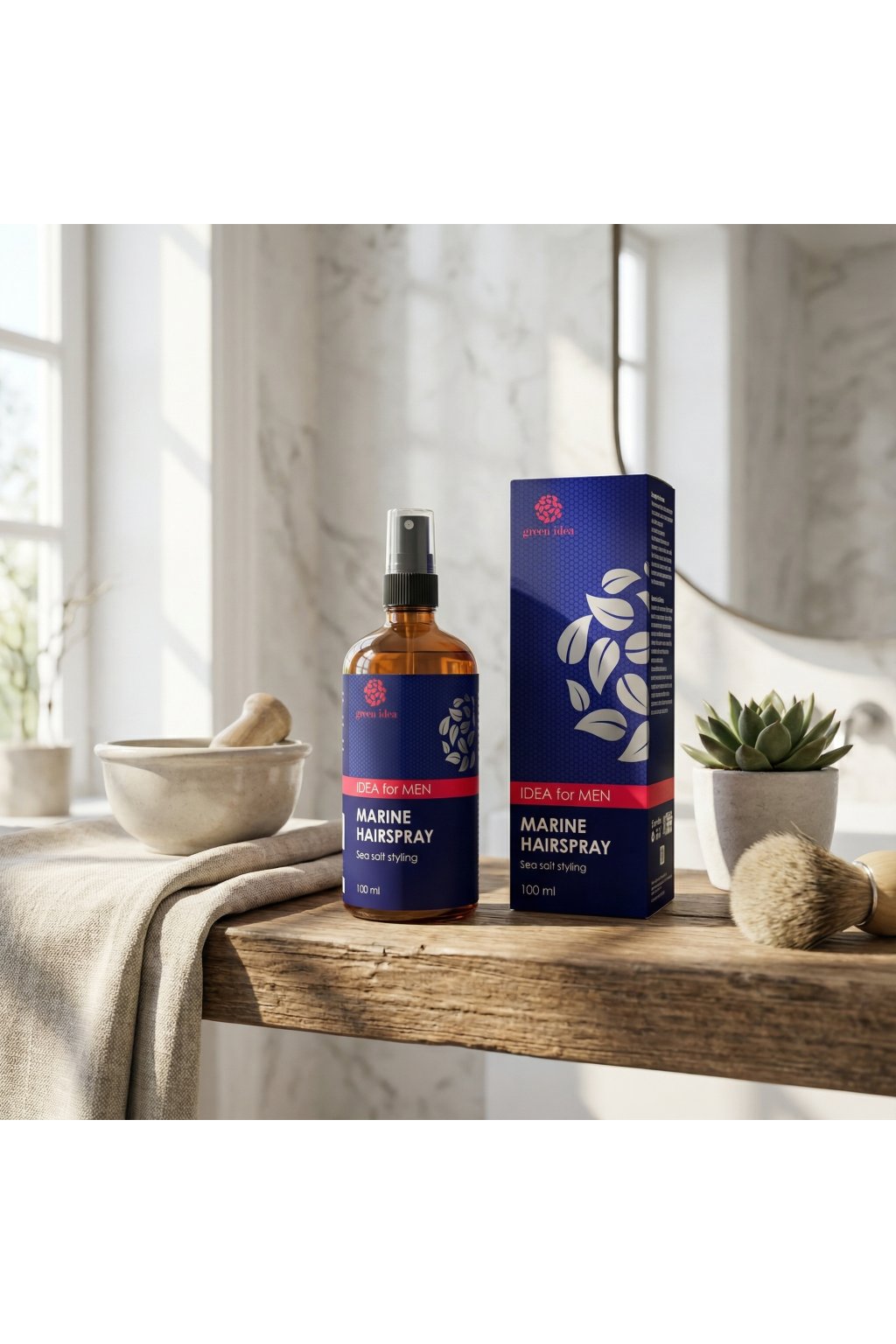Marine Hairspray z řady IDEA for MEN propojuje přirozenou fixaci s péčí o kvalitu vlasů. Díky přírodnímu složení obohacenému o vegan keratin, Cressatine® a Tilicine® posiluje vlasy od kořínků, chrání je před vnějšími vlivy a dodává jim přirozený lesk i objem. Vhodný pro každodenní použití, ať už jdete do práce, nebo z posilovny rovnou na večerní drink.