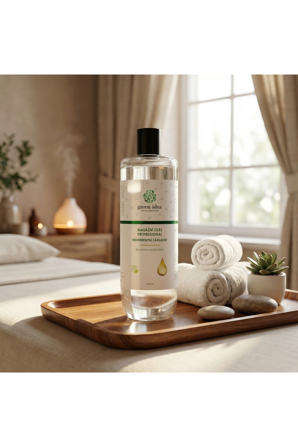 Indiferentní (medicinální) základní masážní olej je vhodný k přípravě individuálních masážních kompozic. Olej je možné v čisté podobě použít pro alergiky a všechny s přecitlivělou pokožkou. Aktivní látky doporučujeme použít v podobě 100% rostlinných silic. Pestrou paletu kvalitních rostlinných silic naleznete v nabídce Green idea.