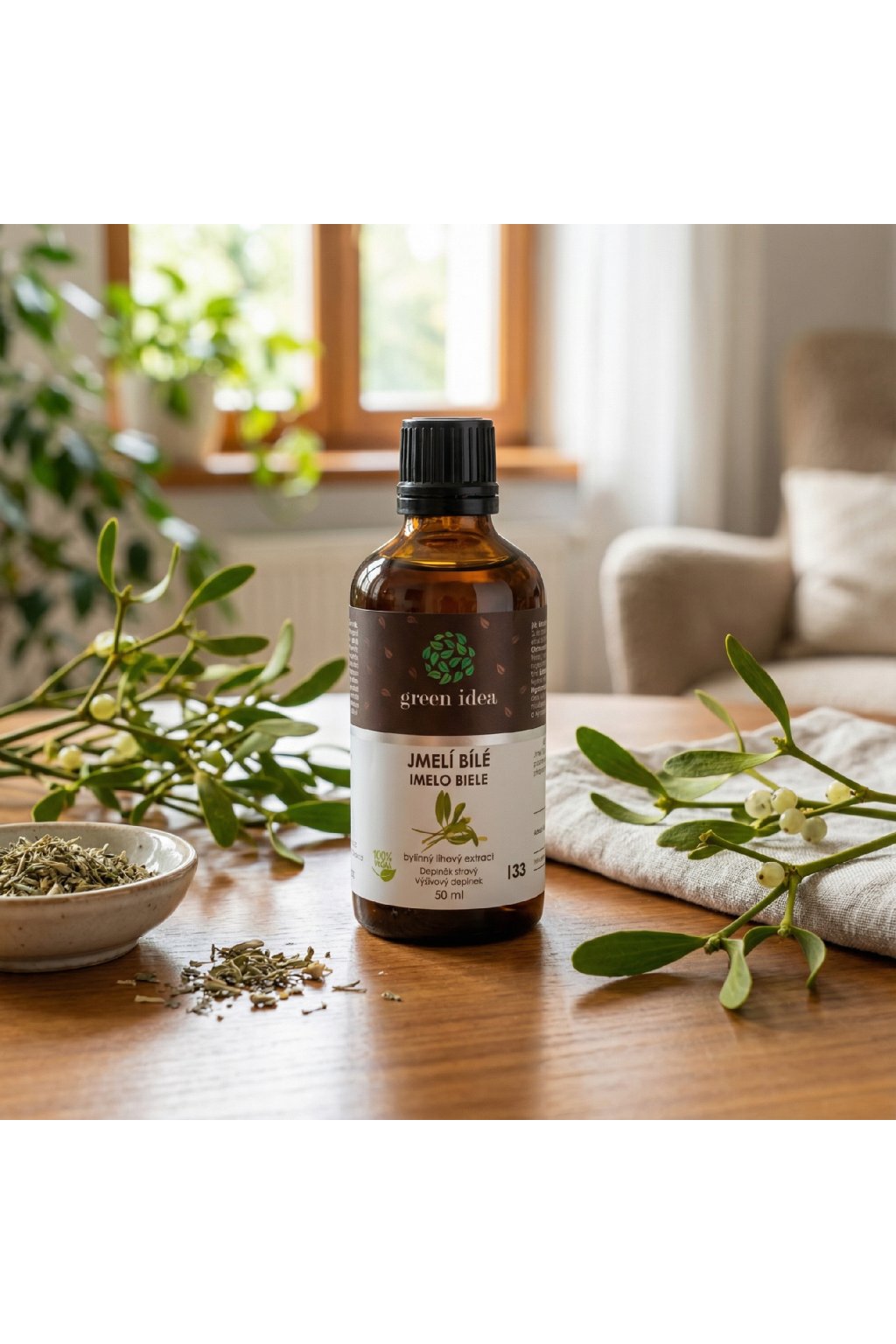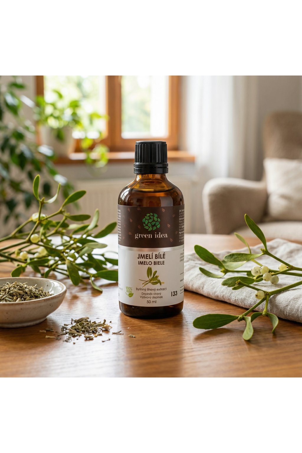 Složení: voda, jemný líh (minimálně 35 obj. % alk./ethanolu), Glyerin, Jmelí bílé (Viscum album) extrakt z celé rostliny (10:1).