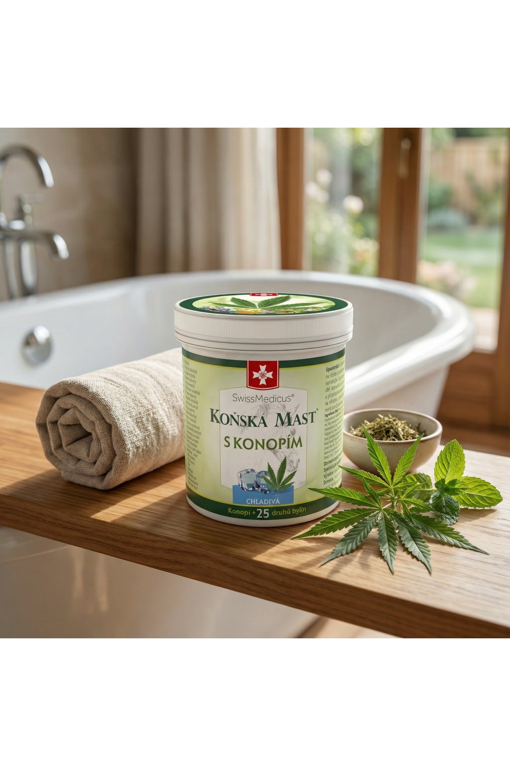 Koňská mast® s konopím je unikátní bylinný balzám s konopným extraktem a 25 druhy bylin a rostlin vyrobený podle tradiční, generacemi prověřené receptury. Vyvážený obsah těchto substancí zaručuje silný a široký účinek při masáži kůže. Kombinuje uvolňující účinky silic s příznivým působením extraktů z bylin.