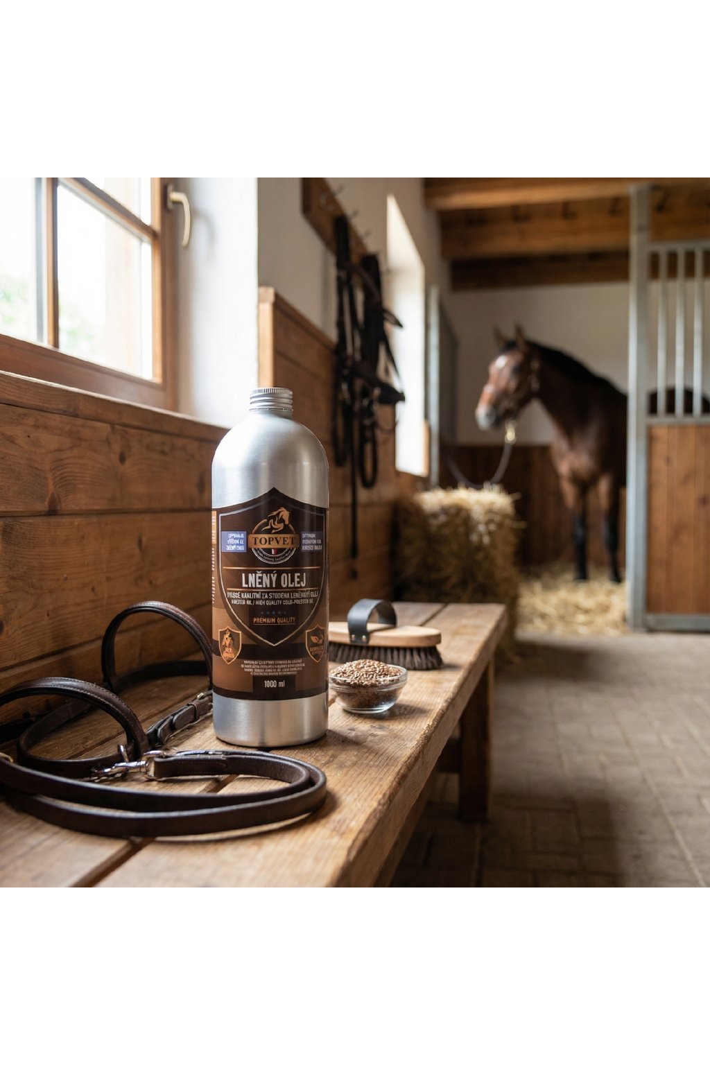 | wt_feed14: | Lněný olej je důležitý pro udržení zdravé pokožky, zdravé a lesklé srsti a hřívy. Usnadňuje koním výměnu srsti při línání. Má pozitivní účinky na mozek, srdce a cévy, potlačuje nervozitu, podporuje imunitu, je prospěšný k udržení dlouhodobého zdraví koní. Lněný olej rovněž podporuje trávení a hřebcům zlepšuje reprodukční schopnosti. |