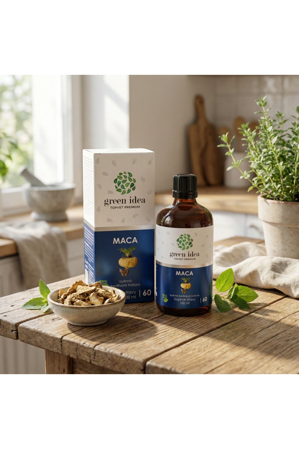Maca je bylina původem z peruánských And. Maca se používá při vyčerpanosti a únavě ke zlepšení fyzické i psychické výkonnosti. Maca je rovněž vhodná k podpoře mozkové činnosti. Doporučuje se také jako zdroj fytoestrogenu při menopauze.