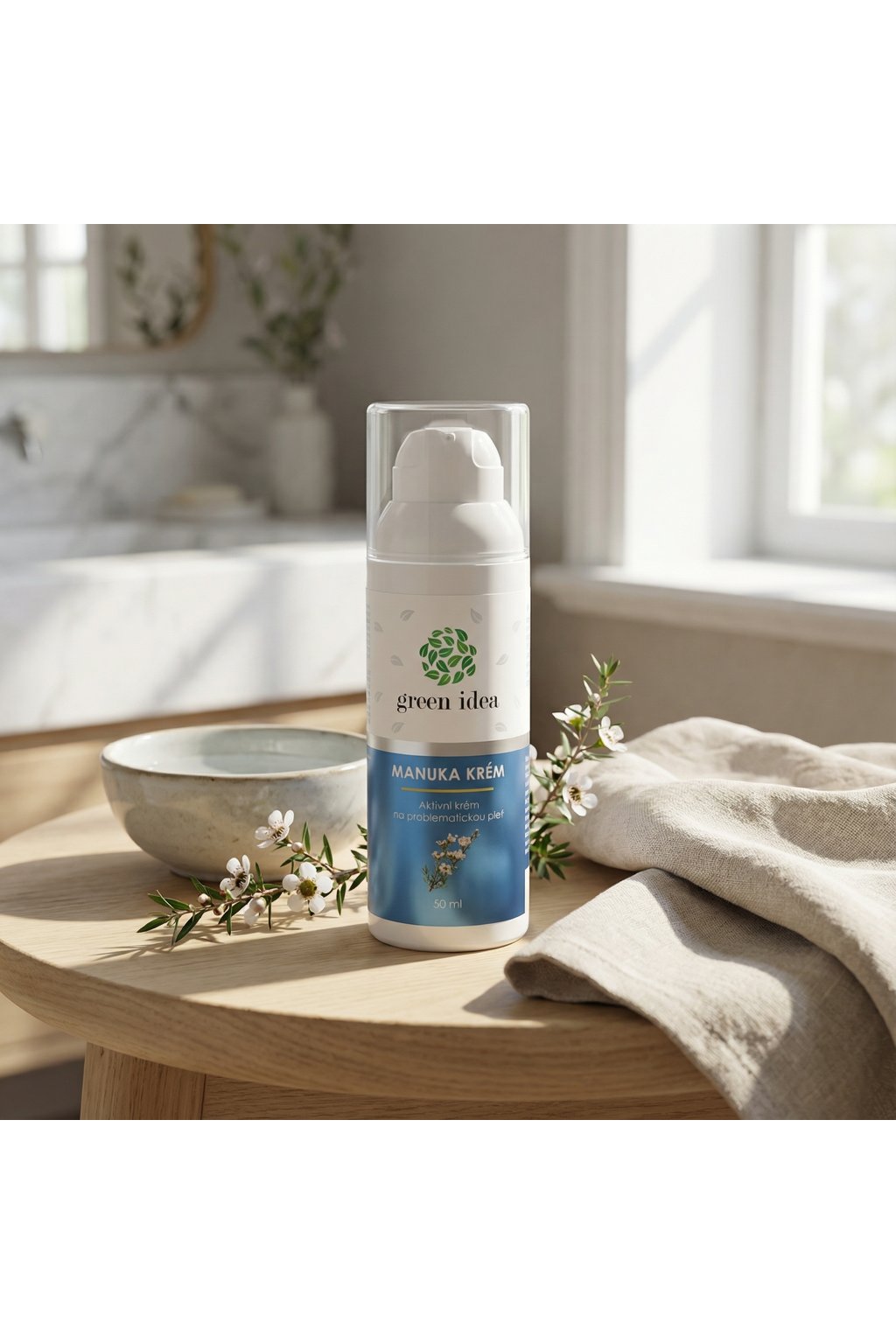 Aktivní krém s obsahem manuky, tea tree oleje a Fucogelu®. Olej manuky má podobné účinky jako australský čajovník (Tea Tree Oil). Svými výjimečnými antibakteriálními účinky jej však daleko předčí (20-30×). Fucogel® optimálně hydratuje a zlepšuje kvalitu pleti. Výborných výsledků s manukou je dosahováno při používání přípravků určených k péči o aknózní pleť.