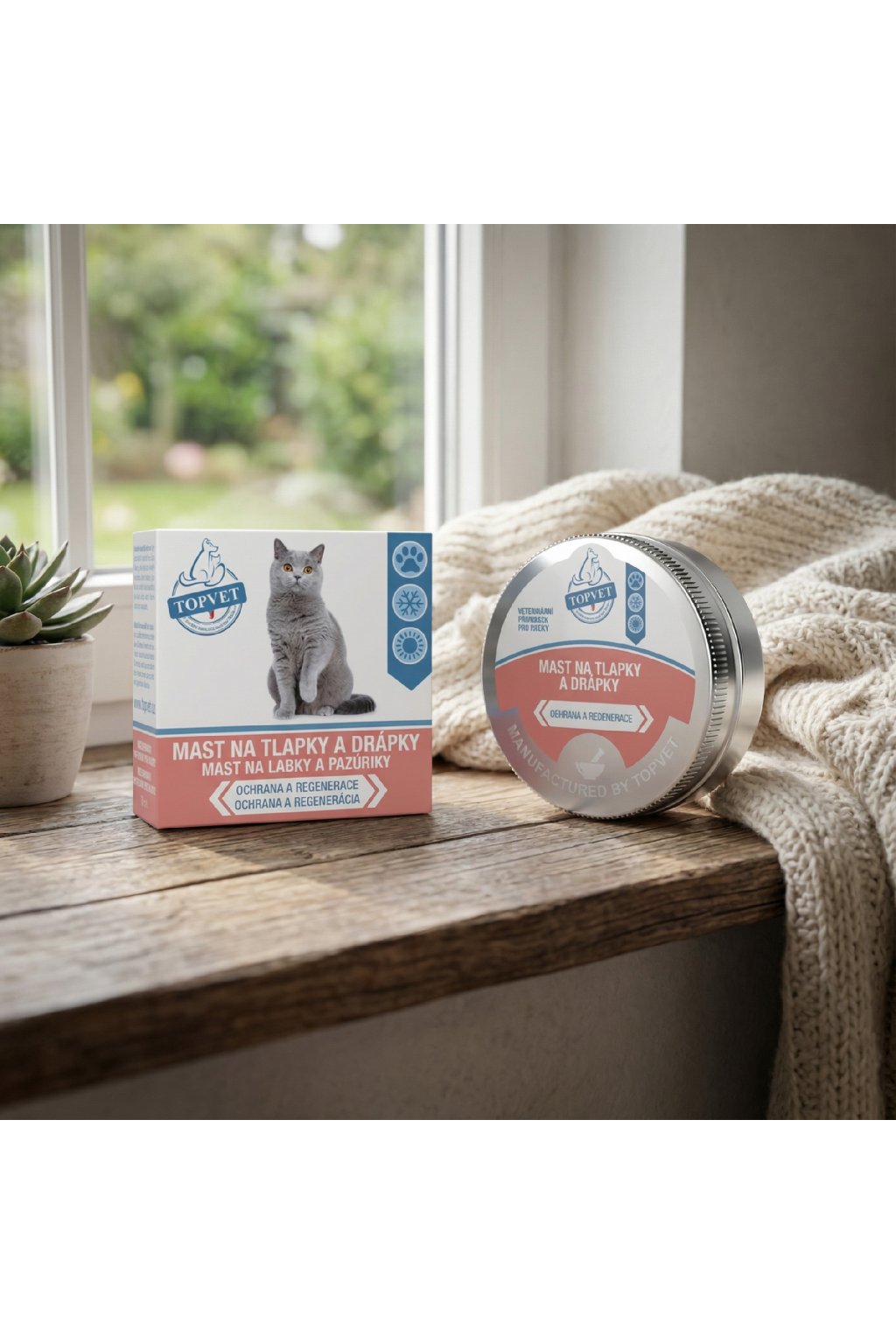 Mast na tlapky a drápky Topvet je luxusní prostředek k preventivnímu ošetření kůže tlapek, drápků a jejich lůžek. Mast vykazuje místní ochranný účinek proti nepříznivým vlivům prostředí, zejména proti vlivu soli, posypových materiálů, dráždivých látek uvolňujících se z horkých asfaltových povrchů chodníků a vozovek, nadměrné vlhkosti, prachu, bláta, cizorodých látek aj. Mast optimálním způsobem vyživuje, regeneruje a hojí drápky a jejich lůžka. Snižuje lomivost a třepivost drápků, zvyšuje jejich elasticitu a pevnost.
