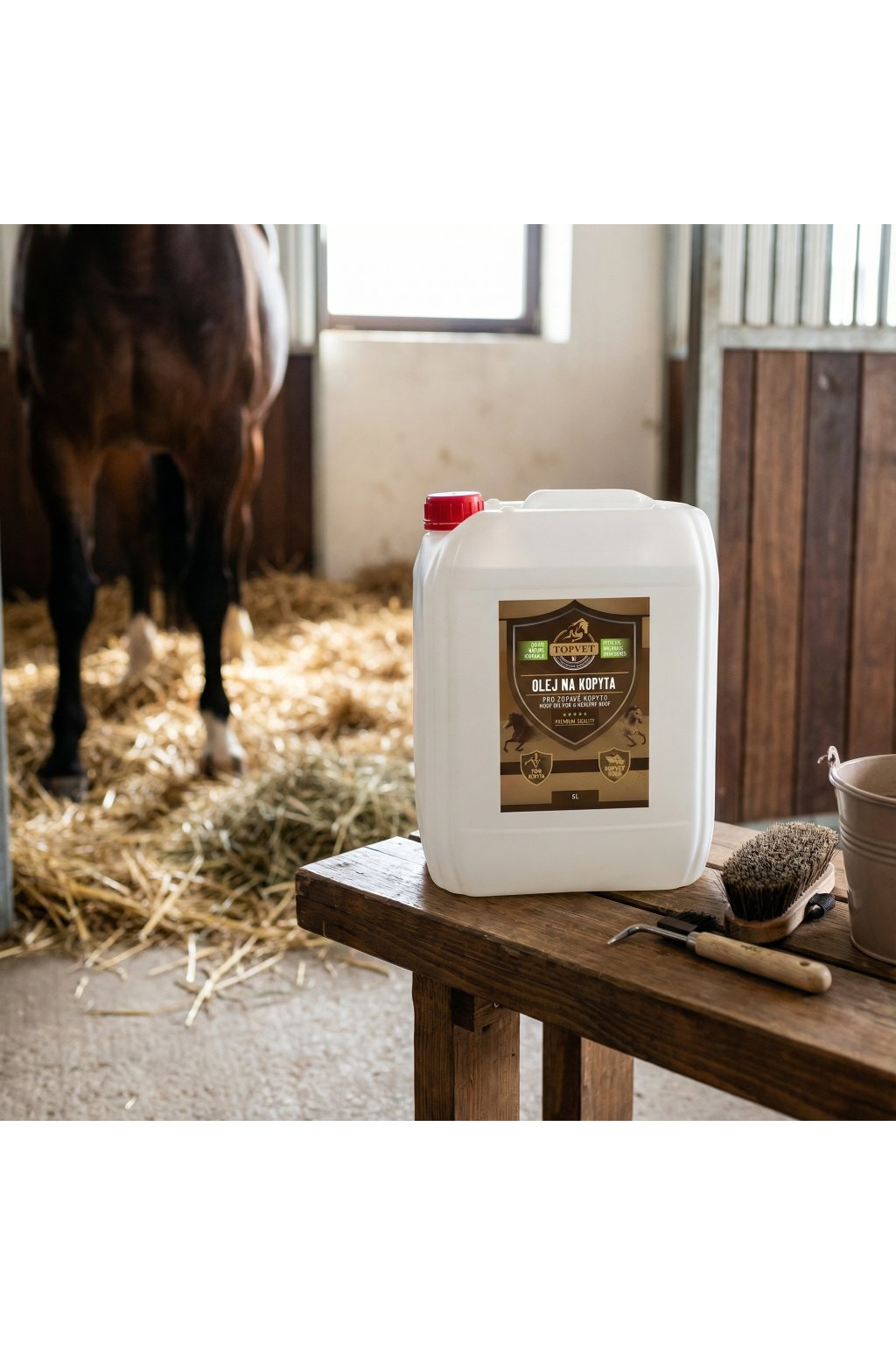 Olej na kopyta je určený pro koně se zdravým, ale i poškozeným kopytem. Originální receptura kopytní tkáň vyživuje, hydratuje a chrání před agresivním prostředím. Kopyto je po použití zdravé, elastické a připravené na vysokou zátěž. Směs luxusních olejů díky vysokému obsahu nenasycených mastných kyselin přirozeným způsobem vyživuje a regeneruje. Směs vosků kopyto chrání. Bylinná směs dodá kopytu lesk a barvu.
