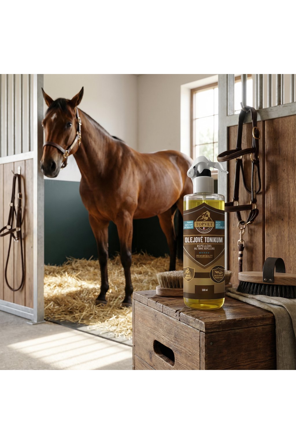 Olejové tonikum je určené pro koně v prostředí s výskytem létavého hmyzu a dalších vnějších parazitů (komáři, mouchy, ovádi, vši, klíšťata a další). Originální kompozice rostlinných výtažků účinně ošetřuje srst a kůži koně a pomáhá odpuzovat vnější parazity. Na přírodní aktivní látky se nevytváří rezistence a nepoškozuje zdraví koní.
