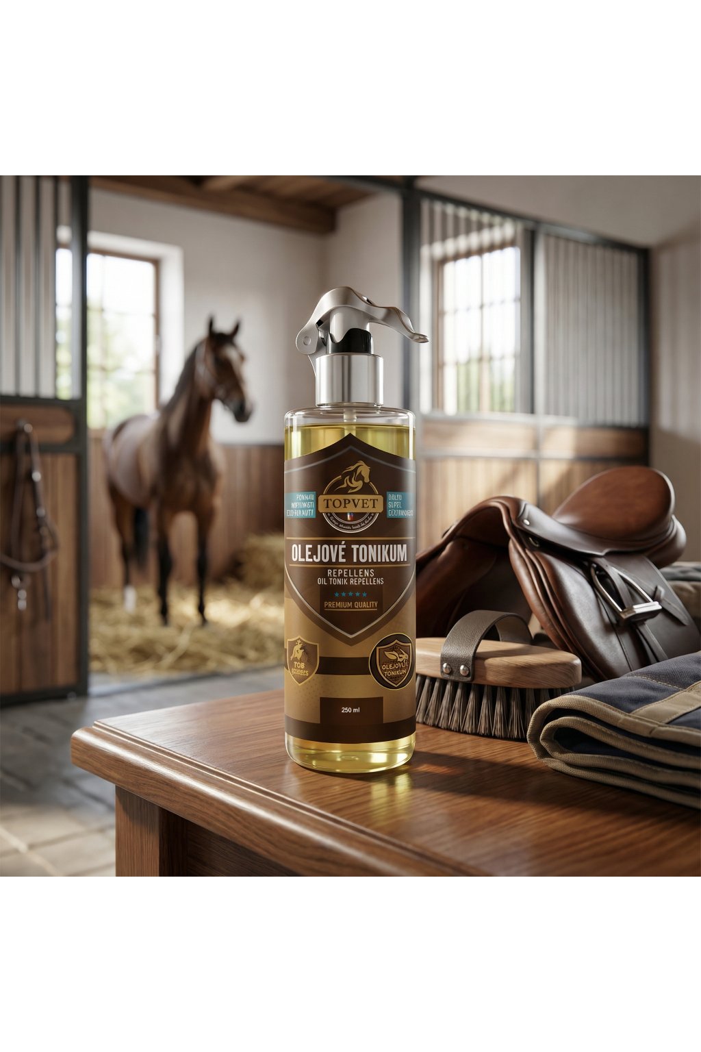 Olejové tonikum je určené pro koně v prostředí s výskytem létavého hmyzu a dalších vnějších parazitů (komáři, mouchy, ovádi, vši, klíšťata a další). Originální kompozice rostlinných výtažků účinně ošetřuje srst a kůži koně a pomáhá odpuzovat vnější parazity. Na přírodní aktivní látky se nevytváří rezistence a nepoškozuje zdraví koní.