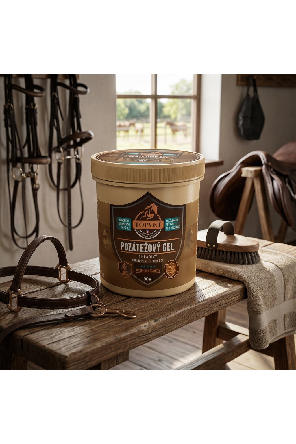 Masážní bylinná kompozice ve formě balzámu s vysokým obsahem rostlinných extraktů a silic. Masáž provádíme po náročném fyzickém výkonu při únavě a ztuhlosti vazů, svalů i kloubů. Těchto vlastností je vhodné využít u sportovních, pracovních i rekreačních koní. Gel je možné použít i jako náhradu ledování.