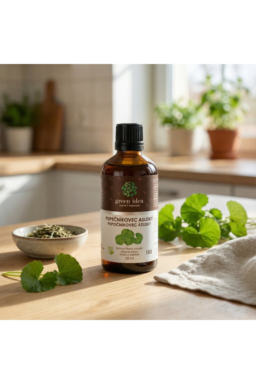 Složení: voda, jemný líh (minimálně 35 obj. % alk./ethanolu), Pupečník asijský (Centella asiatica) standardizovaný extrakt z celé rostliny (saponiny 40 %)