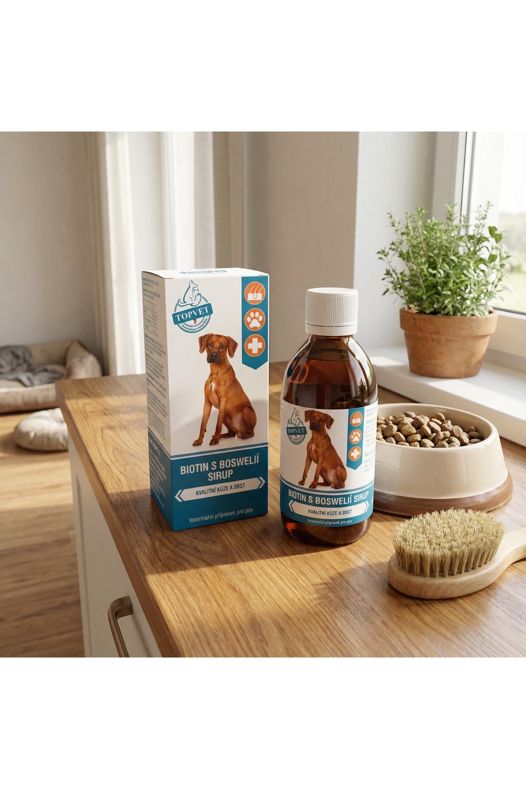 Biotin s Boswelií je doplňkem stravy, který se podílí na zlepšení kvality kůže, srsti a drápků. Při nedostatku biotinu se srst stává matnou, lomivou a drsnou. Pokožka je přesušená, svědivá a s tvorbou lupů. Drápky jsou při nedostatku lomivé a třepivé. Biotin je vhodný doplněk také pro březí a kojící feny. Trvalé podávání biotinu usnadňuje rozčesávání a zabraňuje plstnatění srsti. Boswelie je již stovky let používána pro podporu hojivých procesů.