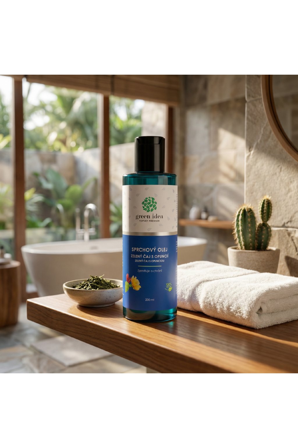 Sprchový olej jemně a šetrně odstraňuje nečistoty z pokožky bez jejího vysoušení, proto je vhodný rovněž na citlivou, suchou a podrážděnou pleť. Olej zanechává na pokožce ochranný film, který posiluje její bariérovou funkci a pomáhá udržet její přirozenou hydrataci. Díky vysoké koncentraci pečujících a čisticích látek stačí aplikovat malé množství oleje. Základní složkou je olej z hroznových jader, který pokožku zjemňuje, vyživuje a ochraňuje. Sprchový olej Zelený čaj s opuncií zanechává na těle svěží, povzbuzující a harmonickou vůni, která probudí vaše smysly.