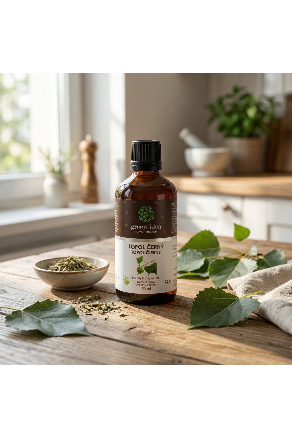 Topol černý je doporučován pro normální činnost ledvin a močového měchýře. Podporuje normální funkce dýchacího systému a cévní soustavy. Vhodný doplněk pro normální stav kloubů a šlach.