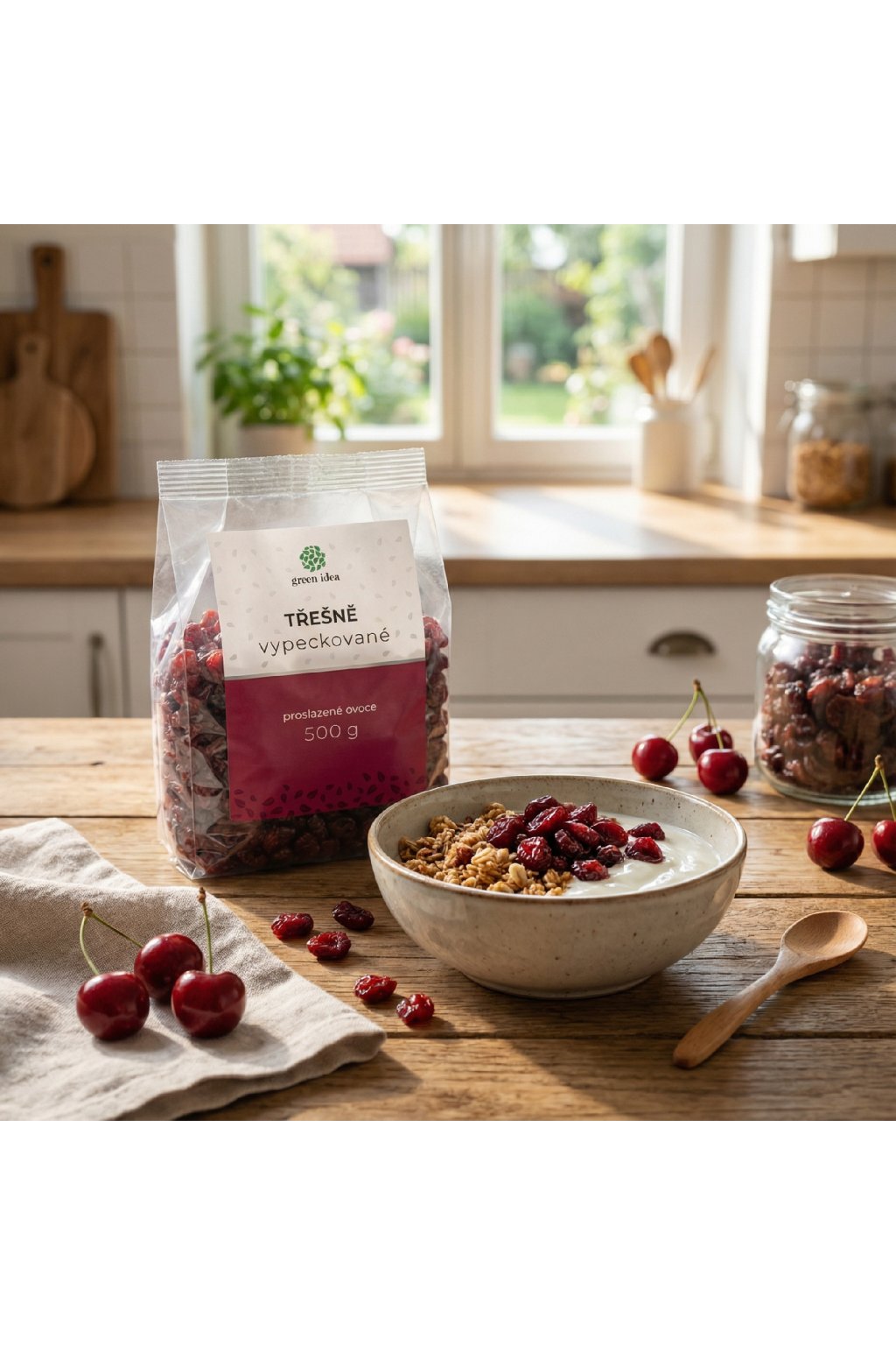 Složení: Vypeckované třešně (65 %), cukr (35 %), barvivo E129, kyselina: kyselina citronová (E330), konzervant: oxid siřičitý, zpevňující látka: chlorid vápenatý.