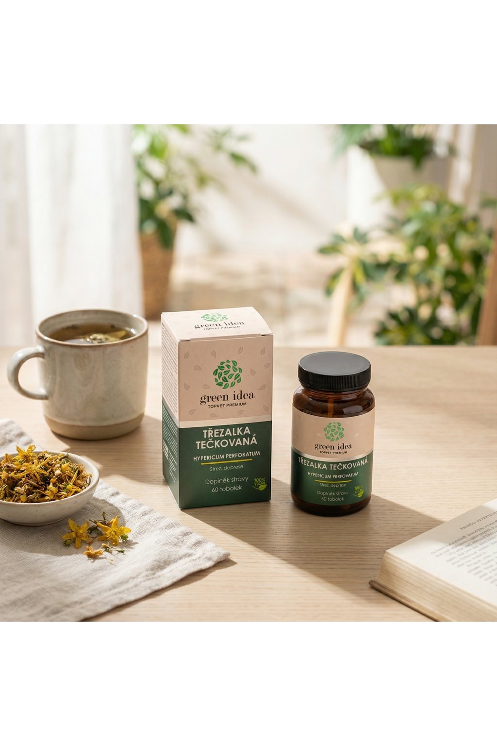 Složení: Třezalka tečkovaná (Hypericum perforatum) standardizovaný extrakt nať, vitamín C (kyselina L-askorbová), mikrokrystalická celulóza (plnidlo), stearan hořečnatý (plnidlo), tobolka (rostlinná želatina)