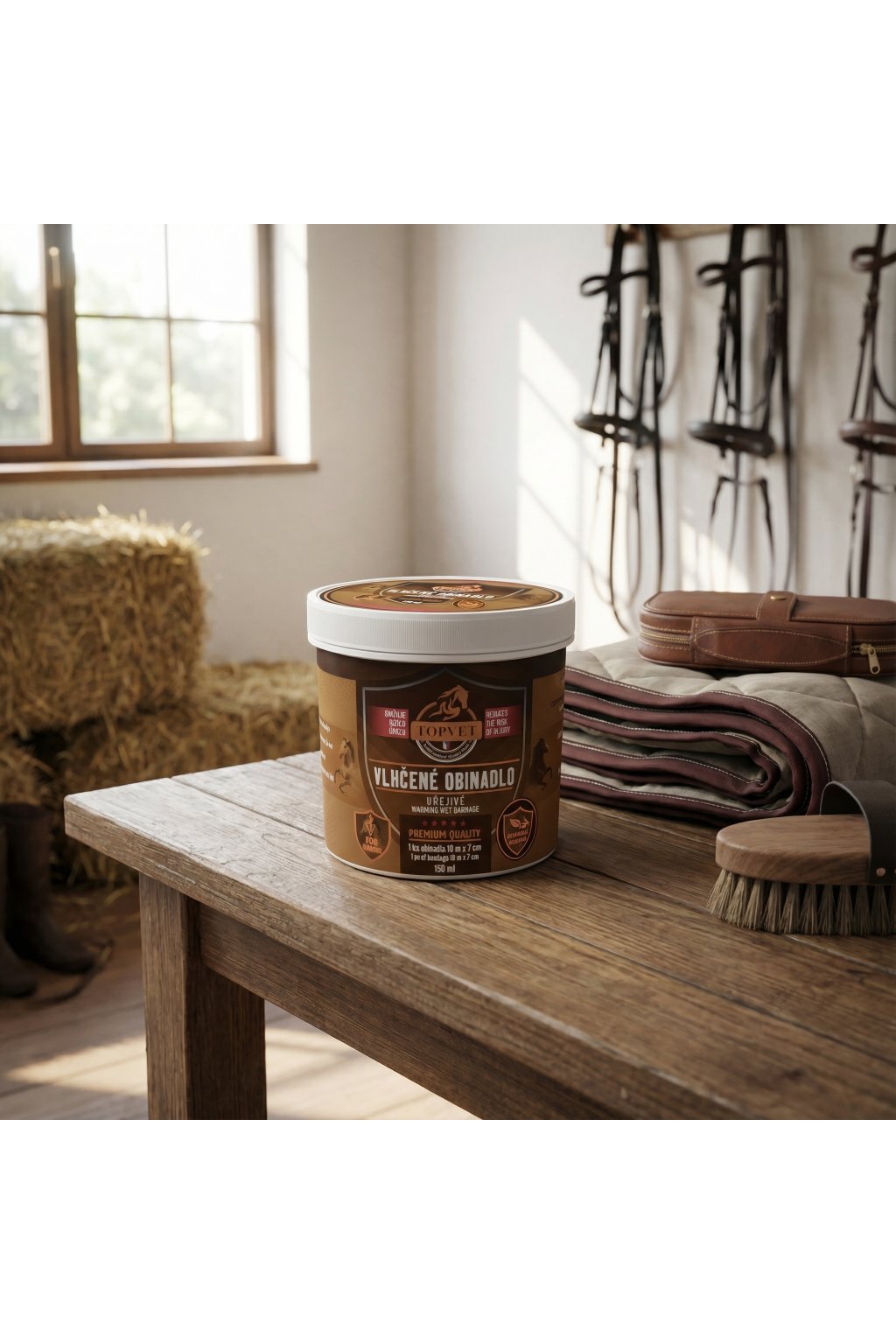 Bylinná kompozice s vysokým obsahem rostlinných extraktů a silic je napuštěna do pružného obinadla. Doporučujeme použít před náročným fyzickým výkonem jako prevenci před poškozením kloubů, svalů a vazů. Těchto vlastností je vhodné využít u sportovních, pracovních i rekreačních koní.