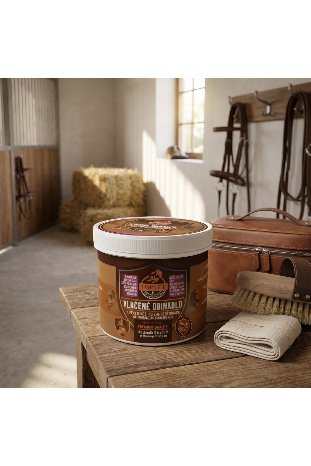 Bylinná kompozice s vysokým obsahem rostlinných extraktů a silic je napuštěna do pružného obinadla. Doporučujeme použít na zhmožděniny, obraženiny a drobná poranění. Terapeutického efektu je možné využít u sportovních, pracovních i rekreačních koní. Bandáž je možné použít i jako náhradu ledování.